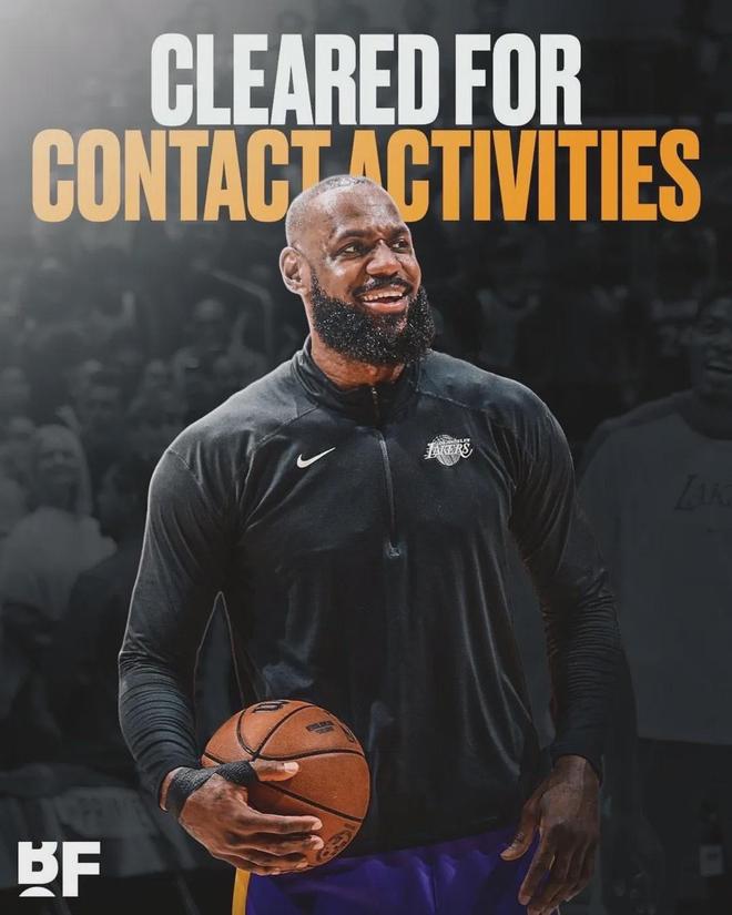 对了,NBA最老的那位复出在即,詹姆斯已获准参加对抗性篮球训练,1-2周后重新接受评估,预计本月中旬回归,本赛季至今因坐骨神经痛一场球没打。